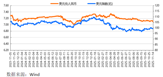 美债方面,上周美债收益率先下后上。当地时间周一起市场预期政府停摆结束,风险偏好略有回升,美债震荡偏弱,周二ADP数据显示劳动力市场放缓,降息预期升温,另有报道称,美国银行监管机构就放宽银行资本要求达成一致,加强了银行加大持有国债的能力,周四特朗普签署结束政府停摆的相关法案,由于缺乏期间经济数据,美联储官员偏谨慎,暗示不赞同12月进一步降息。周五,美债市场跟随避险情绪大幅波动。全周来看,10年期美债收益率上行3.0bp,收于4.14%,2年美债收益率上行7.0bp至3.62%。